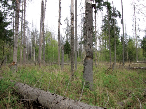 | Rozpad drzewostanu świerkowego w Puszczy Białowieskiej na skutek gradacji kornika drukarza. „Puszcza” pojawi się tu najwcześniej za kilkaset lat |