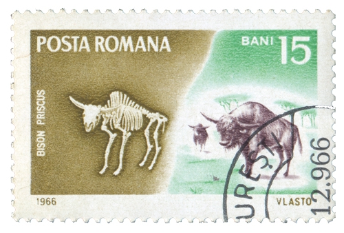 | Prażubr kilkakrotnie uwieczniany był na znaczkach pocztowych na całym świecie. Tu przykład z Rumunii z 1966 roku Fot. www.fotolia.pl |