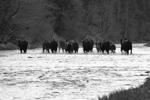 | Bieszczadzkie żubry sfotografowane zimą 1977 roku |