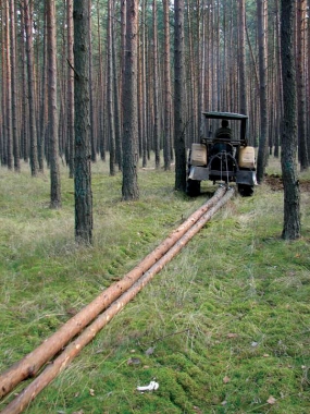 Kto z grupy osób tak przejętych zagęszczeniem gleby w wynikuwpuszczania do lasu „tych ciężkich maszyn” zwraca uwagę na drobiazg, jakim sąstraty w drzewostanie powstające w trakcie swobodnego przemieszczania się końcawleczonej dłużycy? To wszystko można podciągnąć pod ekologię, co zaś z aspektemekonomicznym? O ile większe jest zużycie paliwa „lekkich ciągników”, któremuszą ponad 40 razy pokonywać tą samą trasę co forwarder? Ile więcej spalinzostanie wyrzuconych do atmosfery przy wielokrotności przejazdów? Ile gumywtarte w glebę, gdy lekki ciągnik będzie jeździł wielokrotnie po ładunek, którymógłby zostać zerwany podczas jednej operacji maszyny nasiembiernej? O zużyciuoleju i samego ciągnika nie warto już nawet wspominać. Co zaś z ergonomią? Jakijest wydatek energetyczny robotnika dokonującego zrywki wleczonej zwykorzystaniem ciągnika rolniczego, a jaki gdy wszystkie czynności wykonujeoperator ciągnika specjalnego, nie opuszczając przy tym bezpiecznej ikomfortowej kabiny?