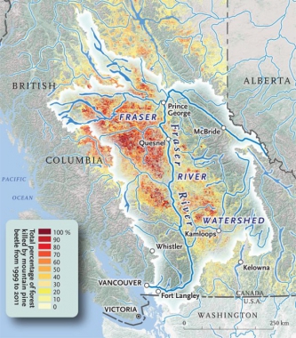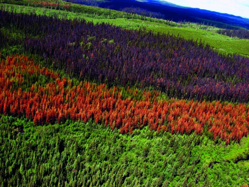 Susze, którewystępowały ostatniego lata na zachodnim wybrzeżu Kanady, spowodowały nie tylkowiele pożarów leśnych. Osłabione lasy stały się łatwiejszym łupem bielojada Dendroctonus ponderosae (mountainpine beetle, MPB) i innych szkodników.