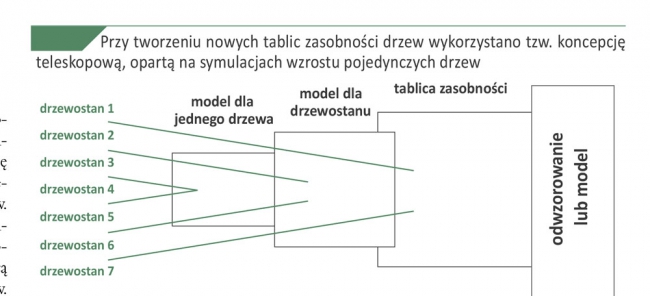 – Używane dziś w leśnictwie, a przede wszystkim w urządzaniulasu, tablice zasobności drzewostanu przestały być funkcjonalne. Nieodpowiadają już aktualnemu stanowi lasu, przyrostowi drzew i poziomowi rozwojugospodarki leśnej – mówi prof. Hermann Spellmann z NW-FVA, kierownik projektu.Nowe tablice mają dodatkowo uwzględniać specyficzną dynamikę przyrostowądrzewostanów mieszanych. Dane do tablic są generowane w oparciu o tzw.koncepcję teleskopową, zgodnie z którą rozwój wielu drzewostanów modelowychokreślany jest wpierw za pomocą symulatora wzrostu pojedynczych drzew.Pozyskane informacje o pojedynczych drzewach są następnie agregowane do postacireprezentacji drzewostanowej i ostatecznie transformowane do tradycyjnychtabel.