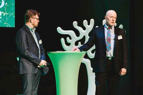 | Naukowcy Jari Hynynen (z lewej) i Sauli Valkonen przedstawili wyniki porównania gospodarstwa przerębowego ze zrębowym na konferencji zorganizowanej przez fiński Instytut Zasobów Naturalnych na początku października 2018 r. w Helsinkach |