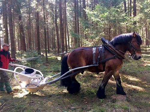 W kompleksie leśnym Öttinger Forst, zarządzanym przezwchodzące w skład Bawarskich Lasów Państwowych regionalne gospodarstwo leśneWasserburg, podsiewy jodłowe są wykonywane przez Roberta Schmidta, którywyspecjalizował się w tradycyjnym siewie konnym. Pomocnikiem specjalisty jestzimnokrwisty koń belgijski Donny. Schmidt sam skonstruował specjalny siewnik dosiewu konnego. Miejscowy leśniczy Andreas Jakob już od dłuższego czasupreferuje wykonywanie podsiewów koniem, aby chronić glebę i drzewostan.
