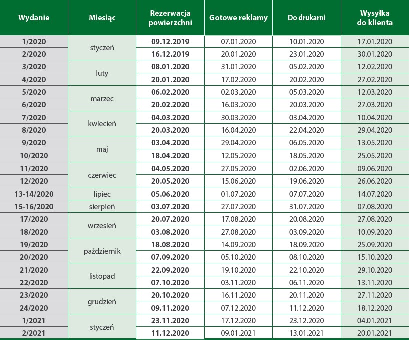 Terminarz wydawniczy
