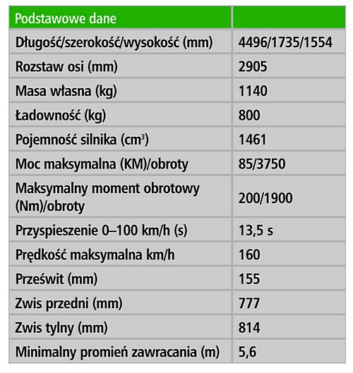 Auto jest wystarczająco dynamiczne, zwrotne, prowadzi się pewnie, nie myszkuje po drodze, a zaletą przedniego napędu jest to, że nawet pusty pikap nie zamiata tyłem po śliskiej nawierzchni. Hamulce (przód – tarcze, tył – bębny) z ABS i elektronicznym korektorem siły hamowania dobrze reagują nawet przy obciążonym samochodzie.