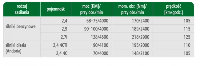 Podstawowy silnik wymaga częstych regulacji, pojawiają się wyciekioleju. Może mieć też przedmuchy, nadmiernie spalać olej, gubić kompresję. Mimoto, jeśli jest wyregulowany, odpala bez problemu nawet w najcięższe mrozy.