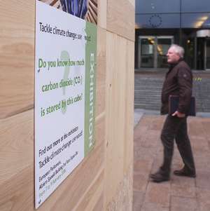 Przed siedzibą Parlamentu Europejskiego w Brukseli stoi wielkie drewniane pudło. Obrazuje ono, ile metrów sześciennych drewna przyrasta w krajach Unii Europejskiej w jednym mgnieniu oka. Umieszczony na nim plakat pyta przechodniów: „Czy wiesz, ile dwutlenku węgla więzi w sobie ten sześcian?” i informuje o umieszczonej wewnątrz budynku wystawie. Jej hasło? „Zrób coś ze zmianami klimatu: Używaj drewna!”.