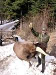 Tadeusz Łuszcz, strażnik leśny w Nadleśnictwie Rymanów, podczas wizji lokalnej prezentuje dowody przestępstwa – skórę, wóz konny z przystosowanym do kłusowniczego procederu dyszlem i litr miodu spadziowego
