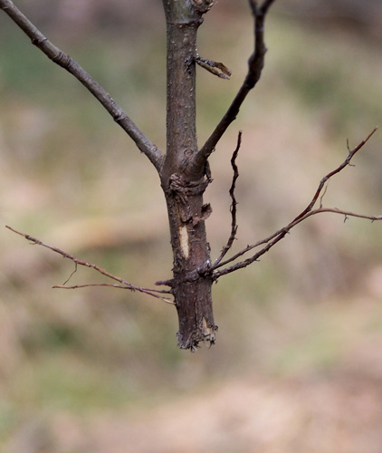 Trzyletnia sadzonka buka uszkodzona przez borsuka