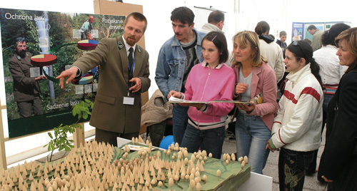 Centralne miejsce stoiska zajmowała duża, drewniana makieta lasu. Wykonało ją kilka lat