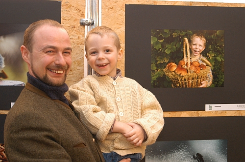 Janusz Sala z synem, który jest bohaterem zdjęcia prezentowanego na wystawie