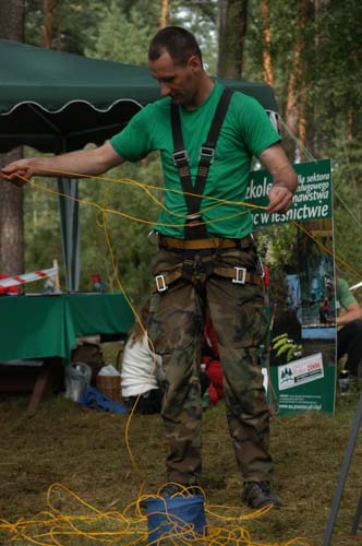 Na stoisku Centrum Kształcenia Przedsiębiorców Leśnych można było spróbować swoich sił w konkursie celności rzutu liną na drzewo oraz zobaczyć pokazy arborystyczne