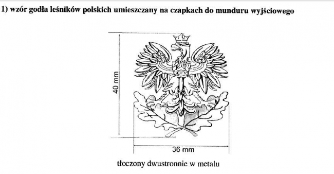 Orzeł zostaje definitywnie! Oto ilustracje z najnowszego projektu rozporządzenia mundurowego dla leśników (17 XI). I to nie jako „stylizowany wizerunek” tylko godło leśników, identyczne w metalowym tłoczeniu i hafcie.