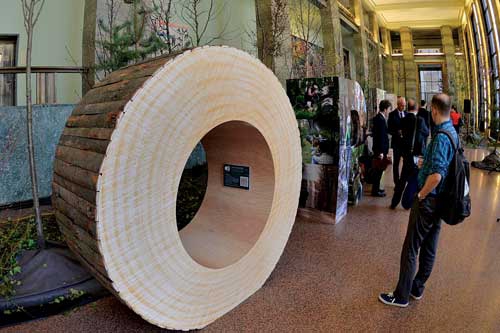 Na uroczystości wiele do powiedzenia miałaPolska. Lasy Państwowe zorganizowały w pałacu wystawę, na której nie tylkochwaliły się praktykowanym u nas modelem leśnictwa (przez niektórych uznawanymza wzorzec do naśladowania). Zaprezentowano to, co w polskim leśnictwienajlepsze. Sercem wystawy jest napis FOREST z dwumetrowych, przestrzennych ipodświetlanych liter, na których nadrukowano zdjęcia prezentujące różneelementy leśnictwa. Widz dowiaduje się, jak pozyskuje się drewno i co z niegopowstaje. Odkrywa, że las to nie tylko drewno, ale i różne funkcje edukacyjne irekreacyjne. Wystawa oddziałuje na wszystkie zmysły zwiedzających – pozaobrazami roślin i zwierząt (w tym tych najcenniejszych, chronionych) w różnejformie, gościom towarzyszą odgłosy natury, na zmysł dotyku zadziała koraróżnych gatunków drzew.