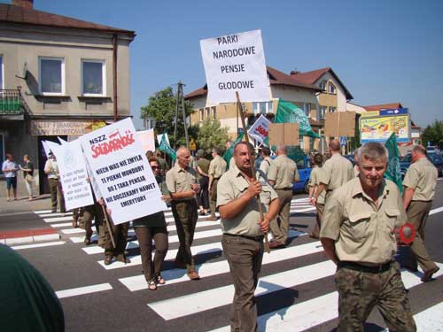 Zaproponowana na przyszły rok podwyżka wynagrodzeń o 10,5% jestdla parkowców nie do zaakceptowania. – Po siedmiu latach blokowania wynagrodzeńta propozycja jest lekceważeniem nas wszystkich i musi budzić skrajne emocje –dodaje Kozłowski. Parkowcy wyliczyli, że zadowalające podwyżki opiewałyby na40%. Ze swoim niezadowoleniem postanowili wyjść na ulicę.