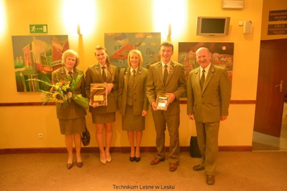 Podczas galifinałowej nagrodę odebrała dyrektor Jadwiga Szylak. Towarzyszyli jej krasomówcyKaja Hrabal i Grzegorz Płaza oraz nauczycielka języka polskiego Beata Brajewska(na fot. wtowarzystwie Edwarda Marszałka). Retorzy pochylili się w swojej prezentacji nadznaczeniem i możliwościami słowa kiedyś i dziś, a ich wypowiedź wywołała żywąreakcję zebranych. Dyrektor podkreśliła wartość trudu wkładanego w pracę zmłodzieżą, przywołując słowa Cypriana Kamila Norwida: – Piękno na to jest,by zachwycało – do pracy. Praca, by się zmartwychwstało. O leśną oprawęwystąpień laureatów z Leska zadbali szkolni sygnaliści. Reprezentacja technikumwzbudziła zainteresowanie nie tylko wystąpieniami, ale też mundurami,obowiązującymi na co dzień zarówno uczniów, jak i nauczycieli.