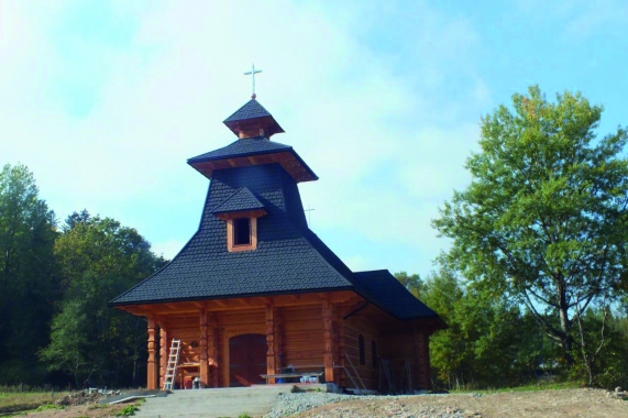 O tym, że z drewna możnawyczarować bajeczne konstrukcje, świadczy nowo postawiony kościółek w Mucznem wBieszczadach. Modrzewiowe i jodłowe bale w jego ścianach, ułożone z ciesielskimpietyzmem, świecą jeszcze świeżością i wciąż pachną żywicą, głosząc pochwałębudowniczych.