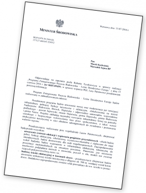 minister środowiska Maciej Grabowski i marszałek województwa podlaskiegoMieczysław Baszko. Sygnowali go też przedstawiciele Białowieskiego ParkuNarodowego i NFOŚ. Program ma być realizowany w latach 2015–2022. Jego głównecele to rozwój turystyki w Puszczy, podniesienie jakości życia okolicznychmieszkańców, szkolenia m.in. dla leśników i mieszkańców. O losach ambitnegoplanu przycichło. W czerwcu br. roku poseł Tyszkiewicz zapytał ministraśrodowiska o losy Programu.