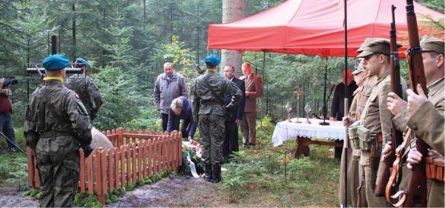 24 września br. ułan doczekałsię uroczystego pogrzebu – uporządkowany na nowo grób wraz z postawionym przykrzyżu pamiątkowym głazem poświęcił kapłan. Na uroczystość zorganizowaną przez Klub Miłośników Historiiz Tomaszowa Lubelskiego zjechały grupy rekonstrukcyjne z różnych części Polski.Podczas mszy wartę przy grobie pełnili żołnierze z 9BatalionuZmechanizowanego z Zamościa. Izabela Bełz