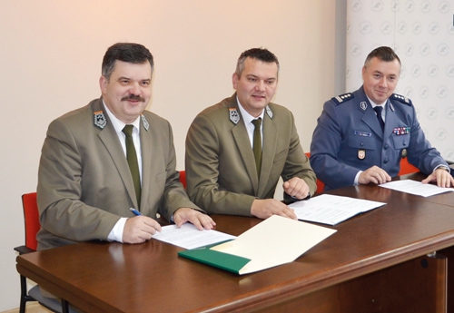 | Uczestnicy podpisanego porozumienia między leśnikami a policją |