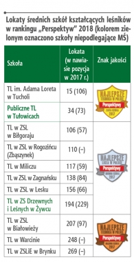 Najlepsze okazało się Technikum Leśne im. Adama Loreta wTucholi. Szkoła uplasowała się na 15. miejscu wśród wszystkich rodzajówtechników w kraju, zdobywając prawo do mianowania się „ZłotąSzkołą 2018”. To ogromny sukces. Jest to także najlepsza średnia szkoła leśna wkraju. Jeśli dodać do tego awans aż o 91 miejsc względem ubiegłorocznej edycji,sukces uczniów i nauczycieli z Tucholi cieszy podwójnie. Szkoła zajęła takżedrugą lokatę spośród wszystkich techników w woj. kujawsko-pomorskim.