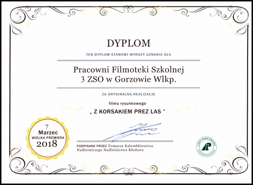 UczenniceZSO nr 3 w Gorzowie Wielkopolskim, działające w ramach Pracowni FilmotekiSzkolnej, stworzyły film animowany „Z Korsakiem przez las”. Nad jegopowstawaniem czuwała Małgorzata Miszczak, opiekun koła filmowego.