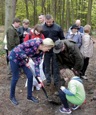 Leśnicy z wydatną pomocą młodzieży i przyjaciół lasureprezentujących różne środowiska i instytucje posadzili ok. 3,5 tys. dębów wLesie Kapturskim na terenie Nadleśnictwa Radom. Sadzenie wpisało się wogólnopolską akcję „1000 drzew na minutę” i obchody 100-lecia niepodległości.Akcentem jubileuszowym było odsłonięcie pamiątkowego kamienia przy pomnikuprzyrody „Dąb Niepodległości”, czego dokonali m.in. Małgorzata Golińska,sekretarz stanu w Ministerstwie Środowiska, i miejscowy leśniczy Tomasz Syta zcórką Julią i synem Antonim.