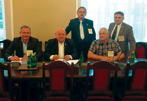 | Strona społeczna, reprezentowana przez związkowców pocztowych i leśnych. Na posiedzeniu kimisji zmiany w „kilometrówce” wspierali (od lewej): Robert Czyż (ZZPP), Andrzej Kobylarz (poseł), Piotr Czaplicki, Czesław Dudek (obaj z ZZPP) i Urban Kolman (ZLP w RP) Fot. arch. ZZPP |