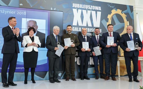 Znamy już 25 laureatów XXV Plebiscytu Czytelników „PrzegląduTechnicznego” na najlepszych inżynierów w Polsce. W Pałacu Prezydenckim 27lutego statuetkę i tytuł „Złotego Inżyniera 2018” w kategorii „Jakość” z rąkprezydenta Polski Andrzeja Dudy otrzymał Benedykt Roźmiarek, dyrektor OśrodkaKultury Leśnej w Gołuchowie, „Srebrnym Inżynierem 2018” został zaś JanuszBańkowski z Biura Urządzania Lasu i Geodezji Leśnej w Brzegu. Było towyróżnienie w kategorii „Ekologia”.